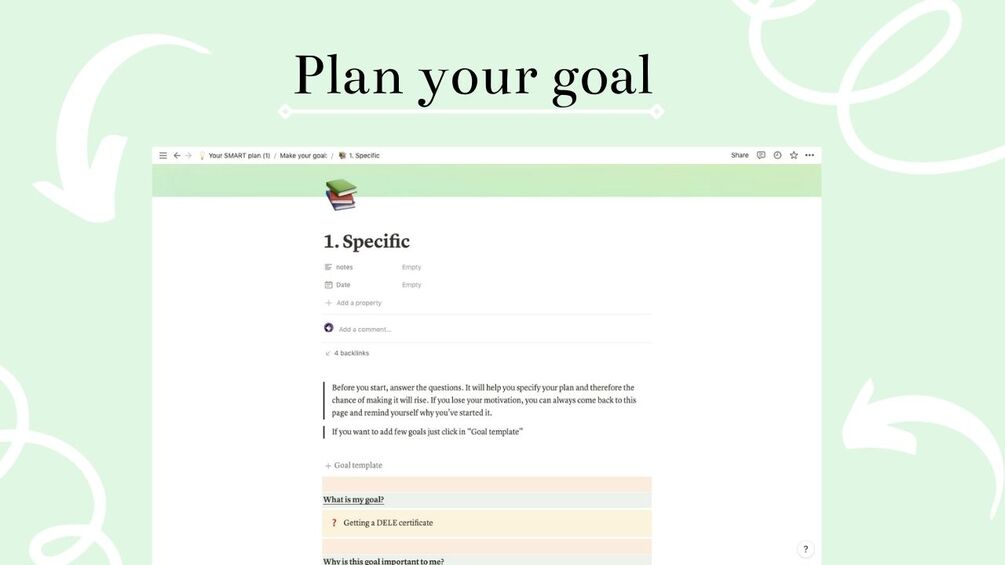 It's very easy! Just click "Duplicate" on the top right corner. It will move you to your Notion workspace where you can start creating your SMART plan.